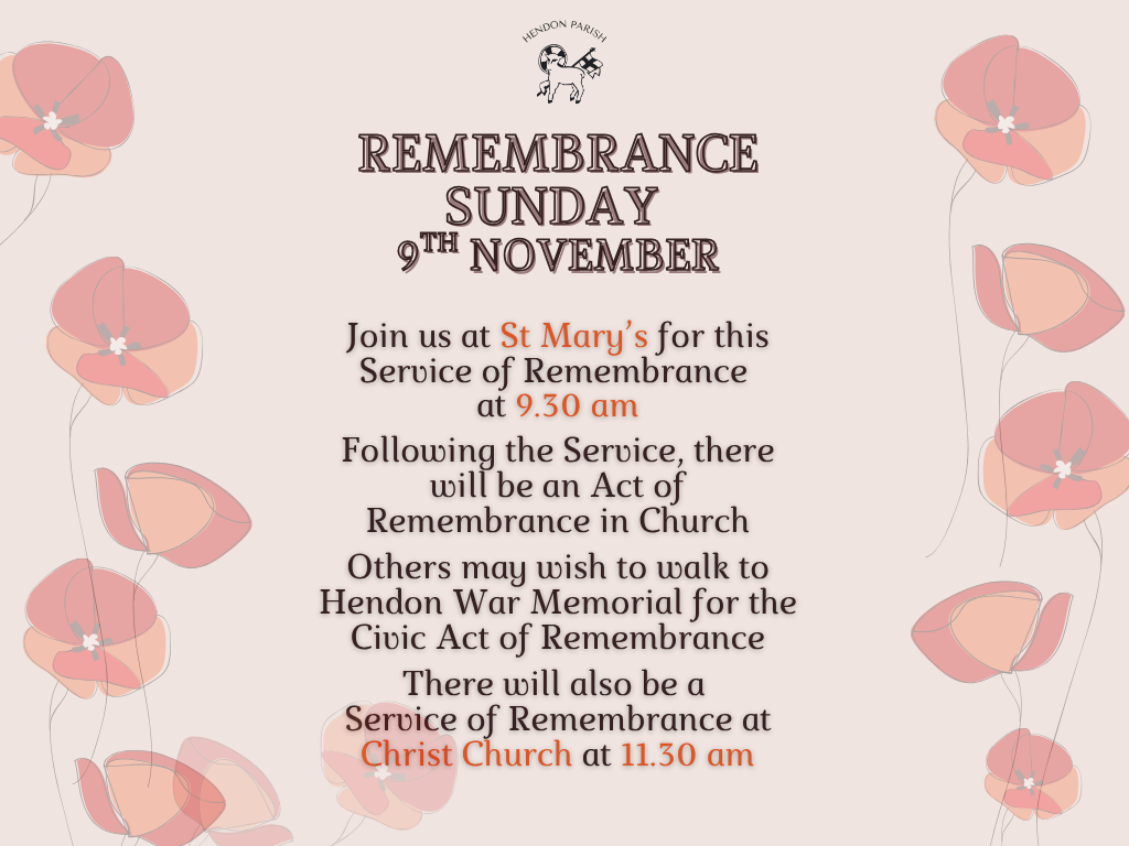 Those who wish may then walk to the Hendon War Memorial for the Civic Act of Remembrance at 11 am.